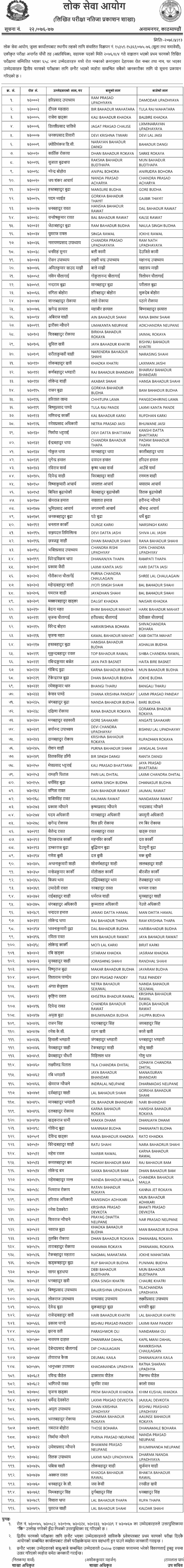 Lok Sewa Aayog (Public Service Commission - PSC), Jumla has published the result of local level Non-Technical 5th level Advertisement No. 15359-15361 / 075-076 (Open and Inclusive), Integral Examination System 5th level (Non-Technical), Assistant or Similar examination Result of Jumla. The total number of 196 candidates has been selected in the first Phase Written Examination out of 658 Participants.