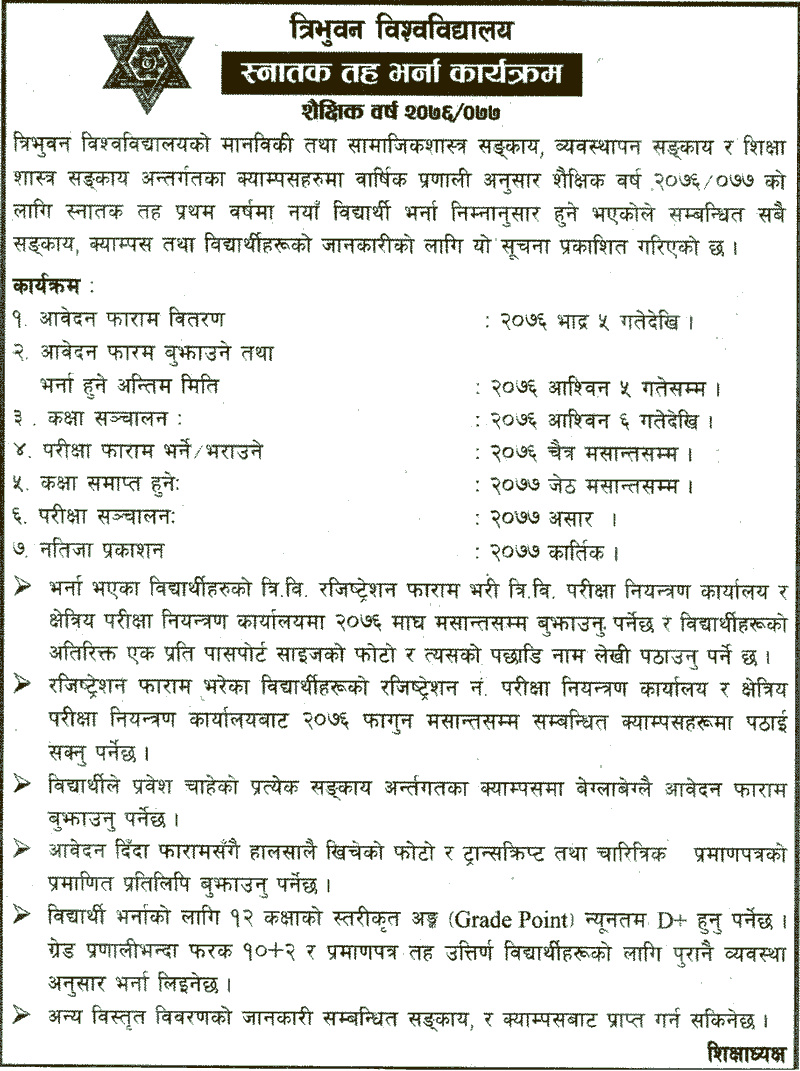 According to the annual system on the campuses under Tribhuvan University's Humanities and Sociology Faculty, Management Faculty and Faculty of Education. This information has been published for the information of all the related faculty, campuses and students as the graduation level for the academic year 2076/77 as follows.