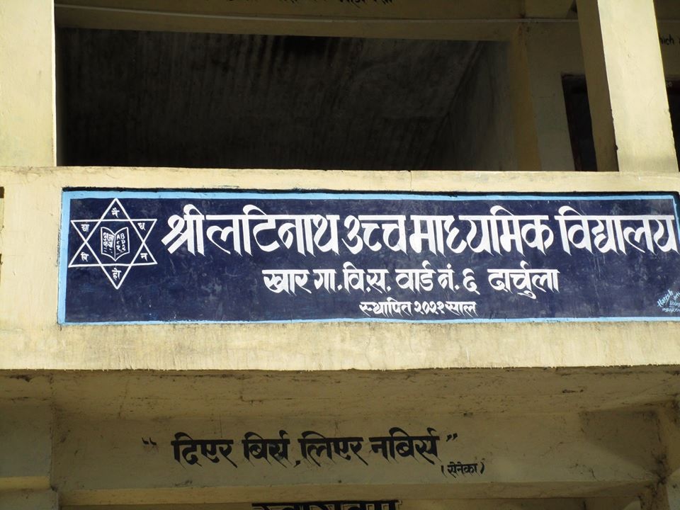 Latinath Secondary School is located in Khar Marma, Darchula, Nepal. It was established in 1964 AD (2021 BS) as a public academic institution and approved by Ministry of Education (MoE), Nepal. It is affiliated to NEB (National Examinations Board) and offers Ten Plus Two (+2) program under Education stream.