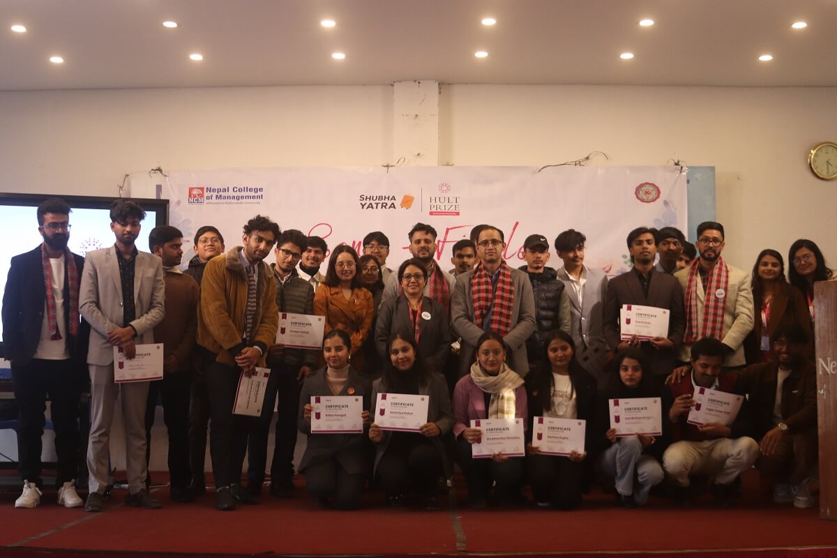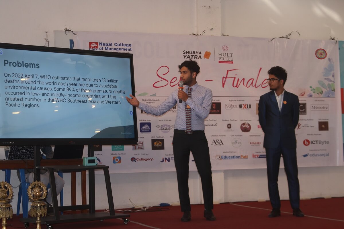 The semi-final round of the Subha Yatra Presents Hult Prize at Kathmandu University was held on January 4, 2025, at Nepal College of Management (NCM) in Lalitpur. This prestigious event showcased the students' innovative and entrepreneurial spirit as they competed to advance to the final.