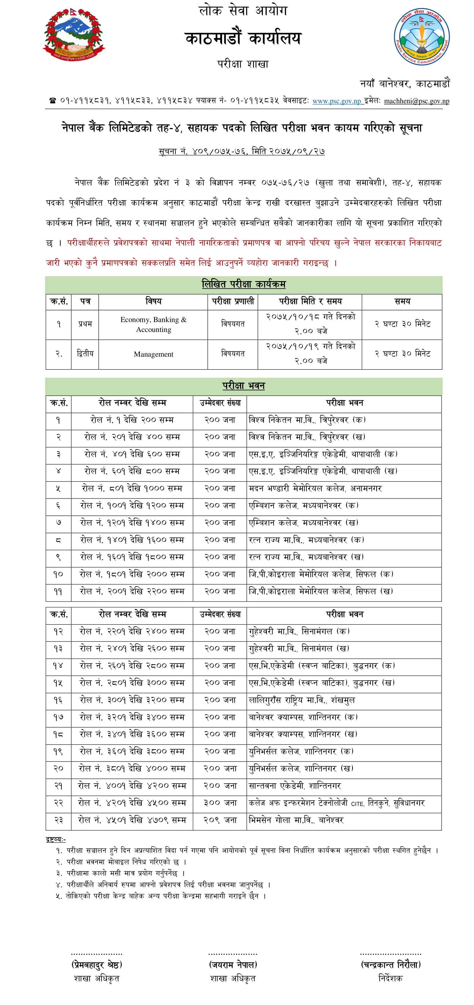 Lok Sewa Aayog has published a notice on behalf of Nepal Bank Limited Assistant Level 4 Written Exam Center.