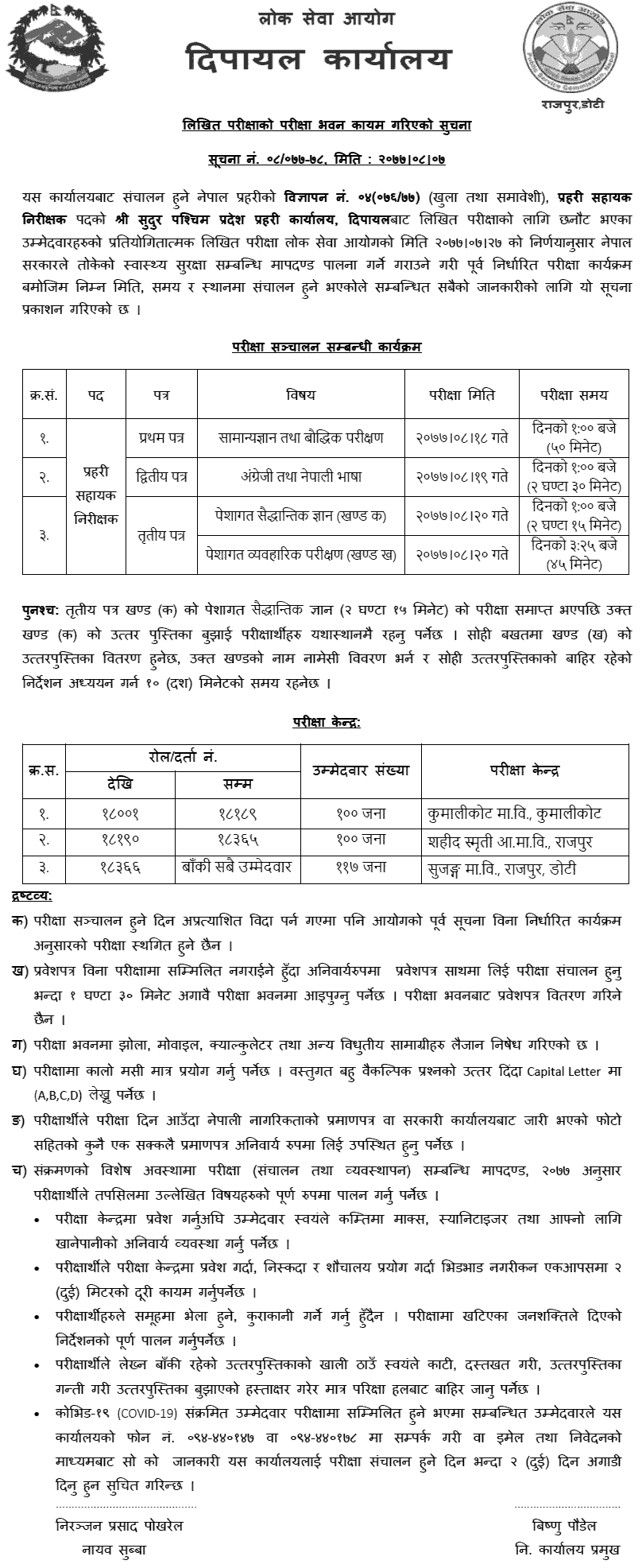Public Service Commission, Dipayal, Doti notice for Nepal Police Assistant Sub-Inspector (ASI) Exam Center: