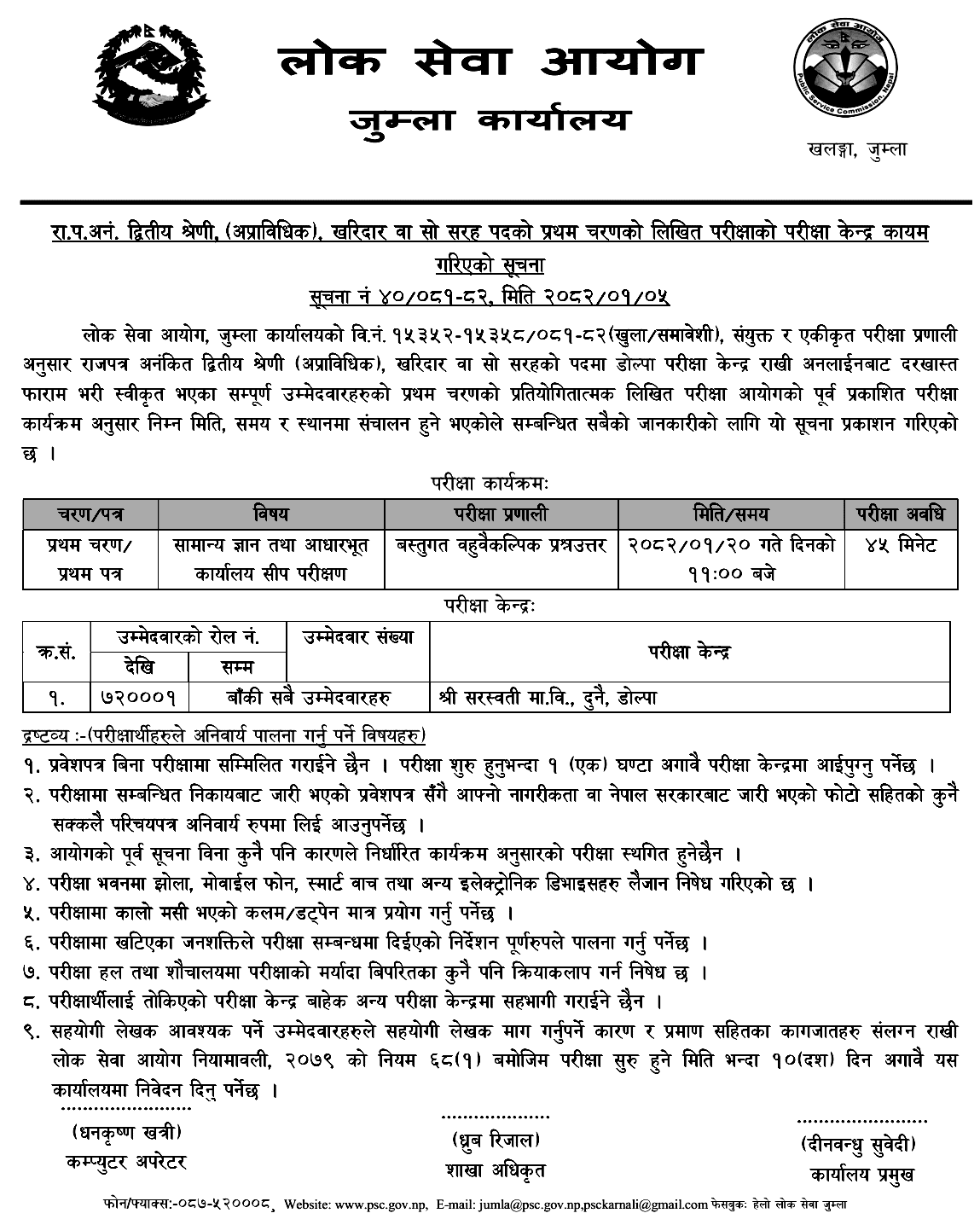 Lok Sewa Aayog Dolpa Khardar First Phase Exam Center 2082