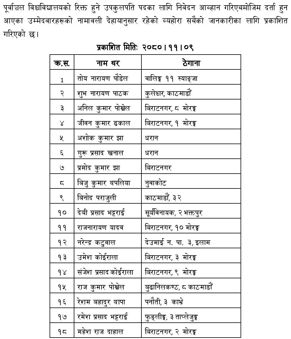 18 Candidates Applied for the VC Post at Purbanchal University