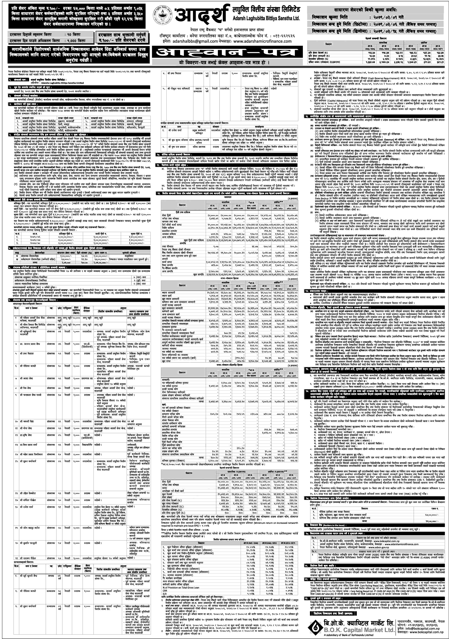 Adarsha Laghubitta Bittiya Sanstha Limited is going to open the IPO issue and sale from 2079 Ashad 1. Adarsha Laghubitta is about to issue 67,000 IPOs worth Rs 6.7 million.