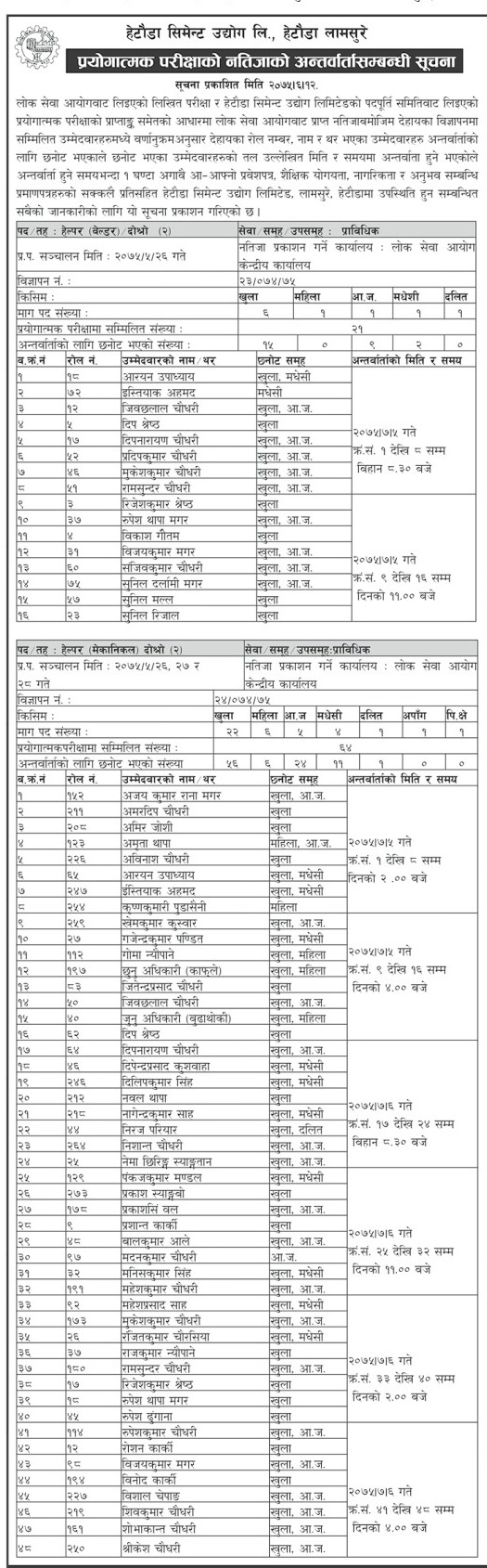 Hetauda Cement Industries Limited Published Vacancy Results for various positions.