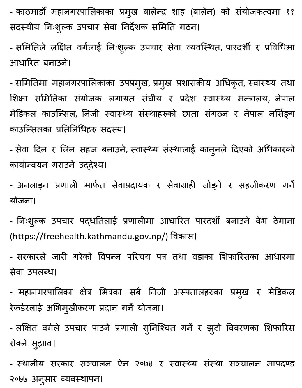In a significant move towards enhancing healthcare accessibility, Kathmandu Metropolitan City, led by Balendra Shah, has established an 11-member Free Treatment Service Directorate Committee. This initiative is aimed at organizing the free treatment services offered by hospitals, ensuring they are systematic, transparent, and technology-driven for the benefit of the targeted groups.