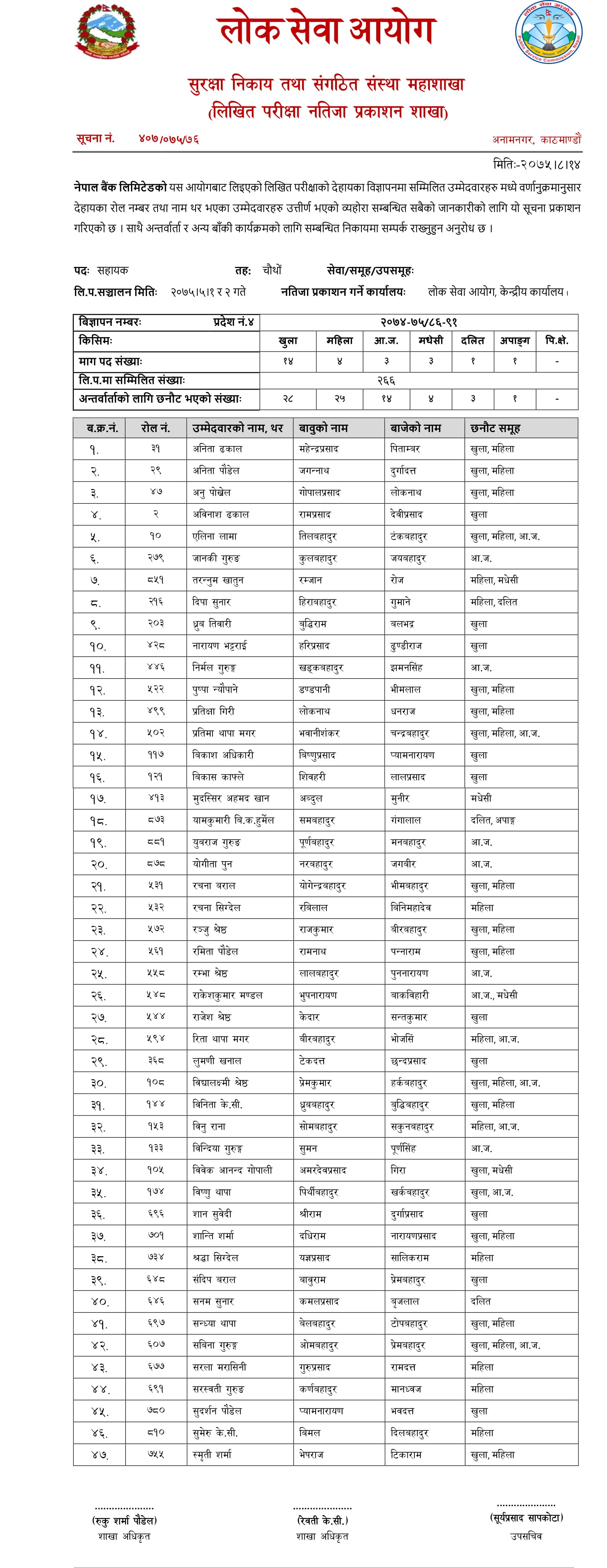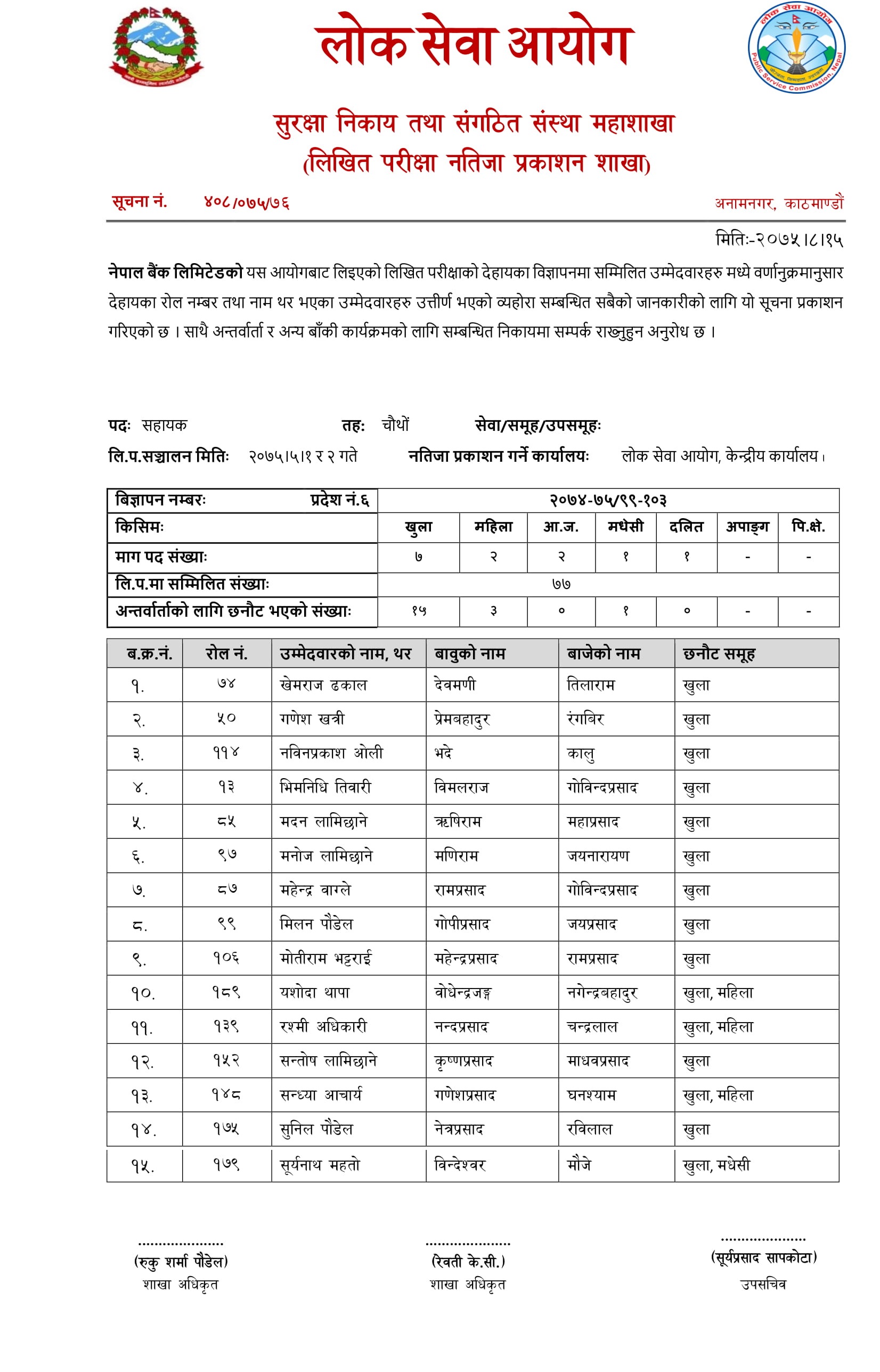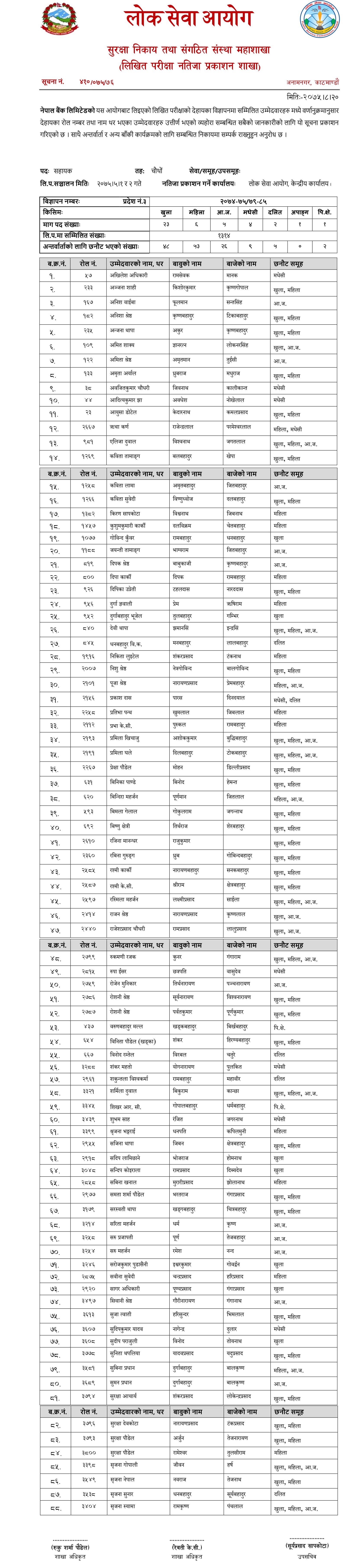 Lok Sewa Aayog Published Nepal Bank Limited Assistant Level 4 Written Exam Result