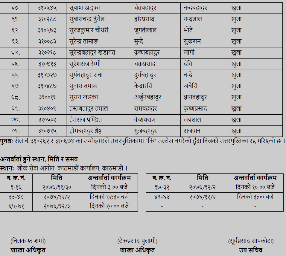 In the written examination conducted by the Public Service Commission, the Kathmandu office, the following information has been published in the written examination for all the candidates regarding alphabetical order of the candidates who have passed the alphabetical roll number and nominated candidates for the interview.
