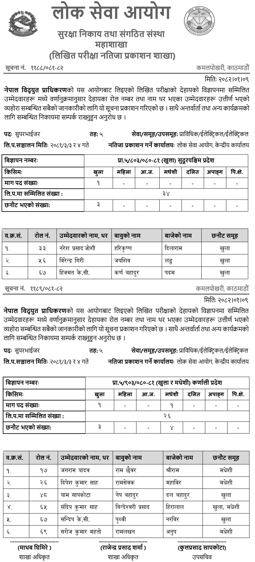 NEA 5th Level Supervisor Written Exam Result 2081 Karnali, Sudurpaschim
