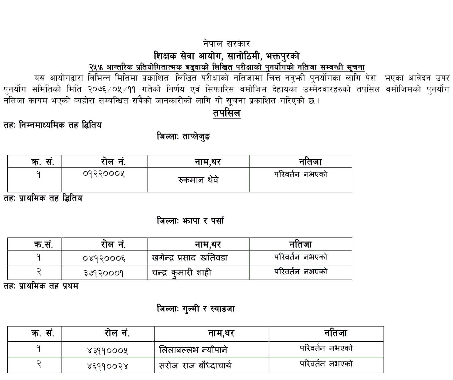 Government of Nepal, Teachers Service Commission, Sanothimi, Bhaktapur,