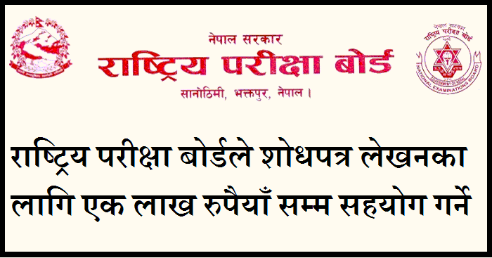 From the National Examinations Board (NEB) as per the provision of support grant for the dissertation writing in fiscal year 2076/77 as follows, the interested students/researchers studying at different university level to prepare the papers based on the topics related to examination/evaluation of secondary education are invited to submit the proposal within three months from the date of publication of the information. Detailed information on this can be found in the Board’s Research, Quality and Governance Improvement Division or on the Board's website: www.neb.gov.np.