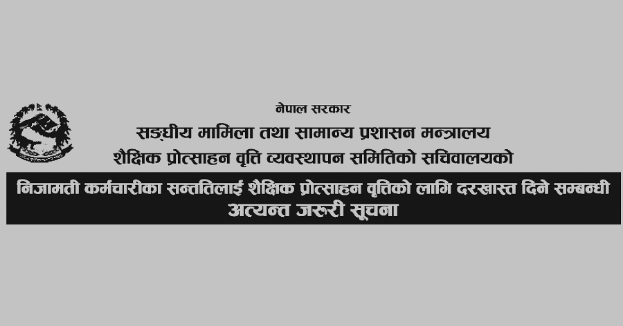 If you are a civil servant in Nepal and want to apply for educational incentives for your children's higher education studies, the Ministry of Federal Affairs and General Administration has issued an urgent notice. Here's what you need to know: