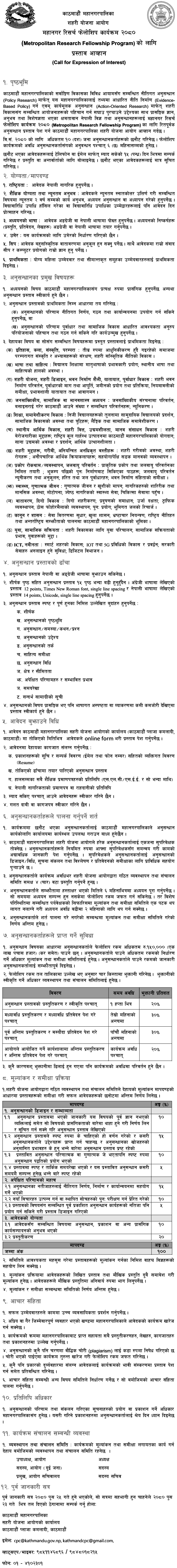 Kathmandu Metropolitan City Deadline Extended for Research Fellowship 2080