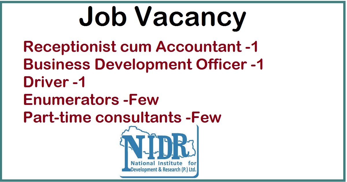 National Institute for Development and Research (NIDR), Shankhamul Road, New Baneshwor, Kathmandu has been working since 2012 in the field of various Population-based and Biological survey/research is looking for following staffs and consultants:
